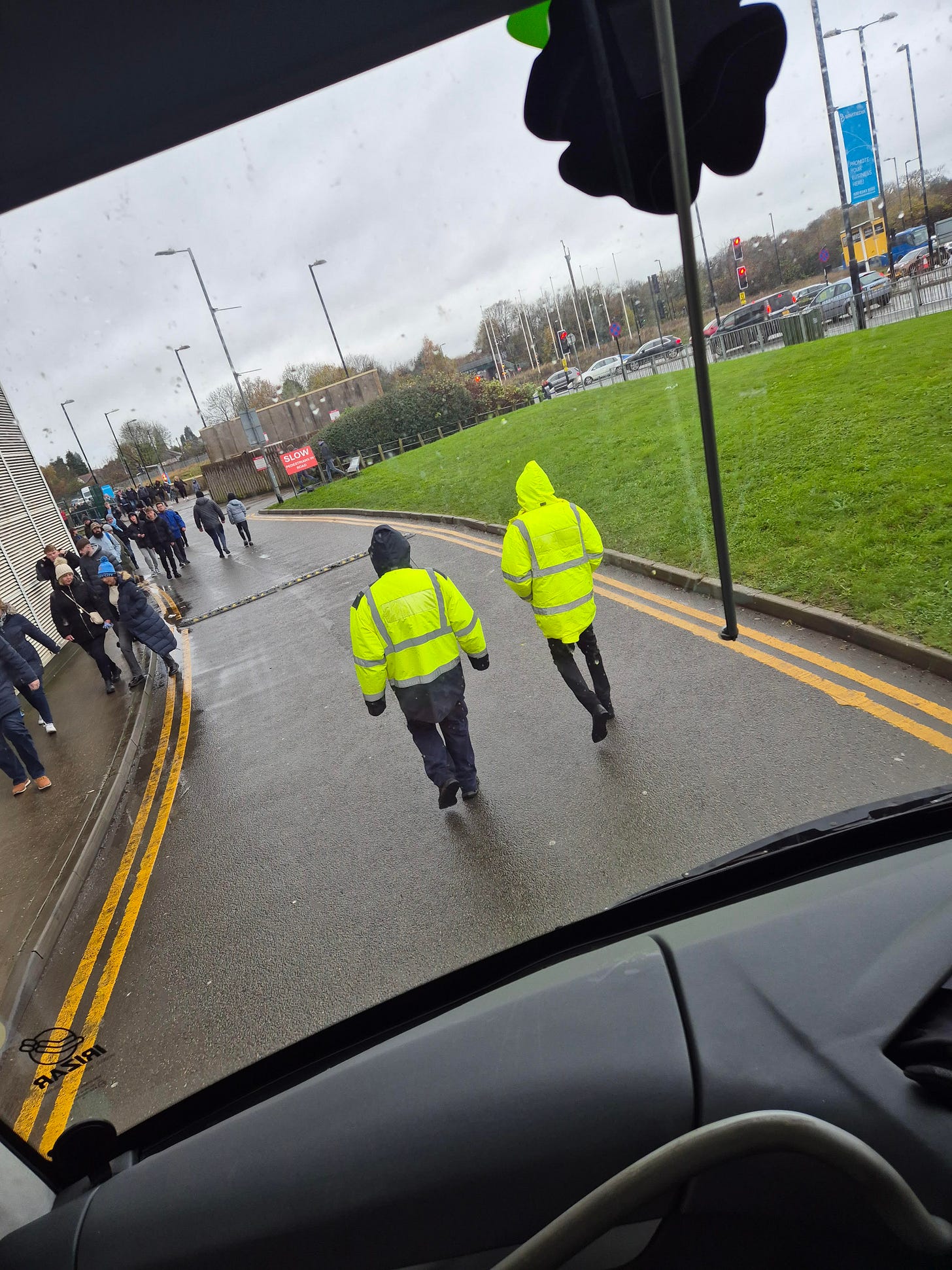 Getting into the stadium itself was a bit bizarre. Being made to wait for 5 minutes for 2 stewards to walk the coach 75 yards to the car park didn't make any sense. And the queues at the turnstiles were shocking. 5 turnstiles for 3500 fans? Come on. Have a word. 30 minutes we took to get in, missing kick-off despite getting off the bus at 12:00.