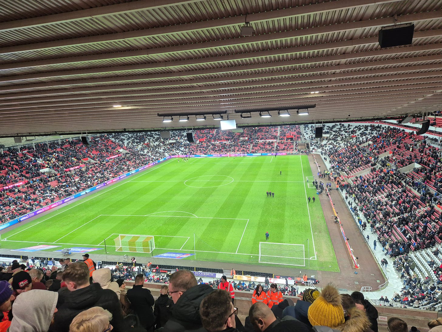 The Stadium of Light. At what point I'm going to stop referring to it as a new stadium when it opened in 1997? I'm not entirely sure. What I do know is it's a magnificent ground. Usually about -15 degrees even in summer, but magnificent, with the away fans are treated to a brilliant view as seen below. Normally, I prefer to be lower tier pitch side, but for the two big uns in the northeast, I really don't mind being up in the gods.
