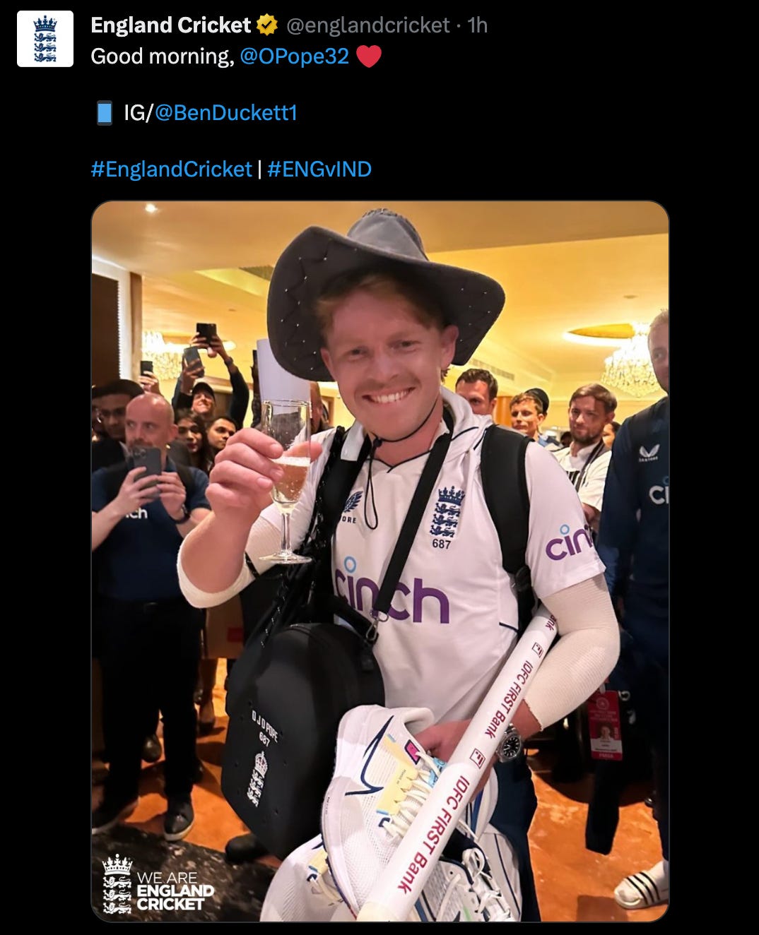 England is straining under the amount of humble pie ordered across the land. After a pretty disastrous start to the first Test Match on their tour of India, England put together the sort of second-half cricket renaissance you only see once a generation, with Ollie Pope sweeping his way to 196 runs and debutant Tom Hartley taking seven wickets in the second innings as England grabbed a famous victory where very few manage the feat.