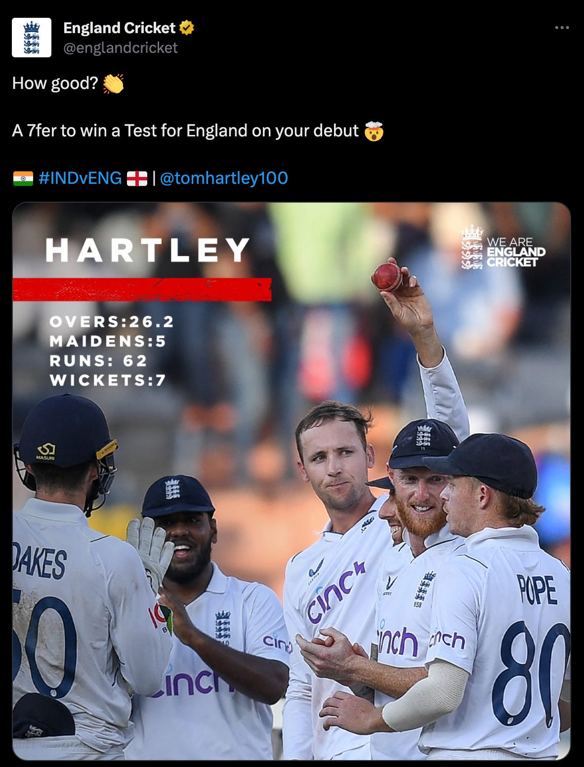 Vitriol, doubt and armchair analysis rapidly faded away as the last three Indian wickets fell on Sunday. I’ll hold my hands up: as Tom Hartley was swatted around the ground in the first innings, managing to claim two wickets for a gut-punching 131 runs, I wasn’t entirely sure we’d found the solution to our spinning issues. However, Hartley’s performance in the second innings was something out of a feel-good sports flick, the Lancastrian ripping through India on their home turf as if it were a training session for the under 17s.