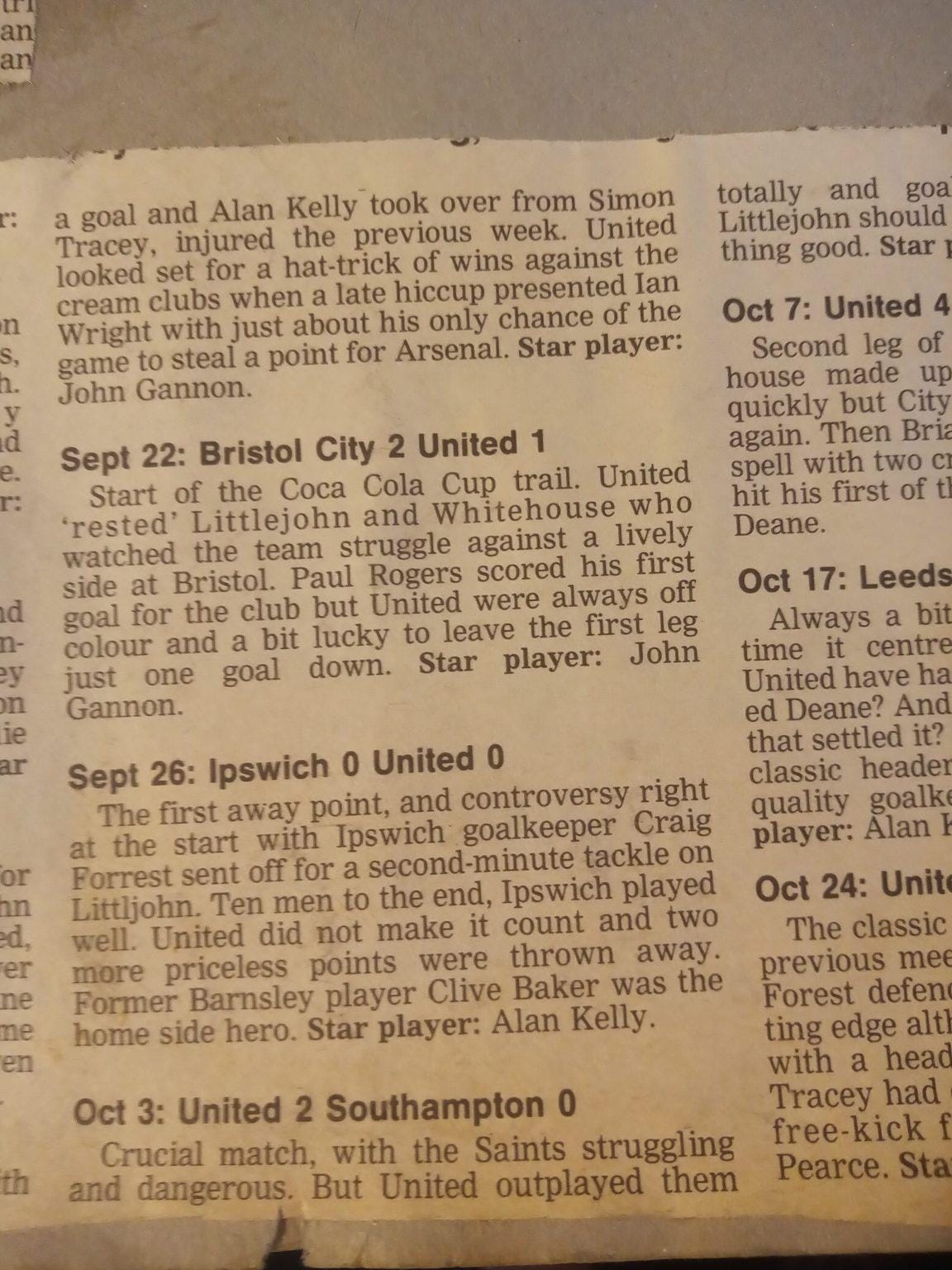 United were in dreadful form, we had sold our captain, we had sold our only fit striker, and our best player was out with glandular fever. And then, for reasons known only to my younger self, there is a completely random picture of John Gannon thrown in. I can only assume I was trying to make the point that everything felt stacked against us going into the Wednesday game…