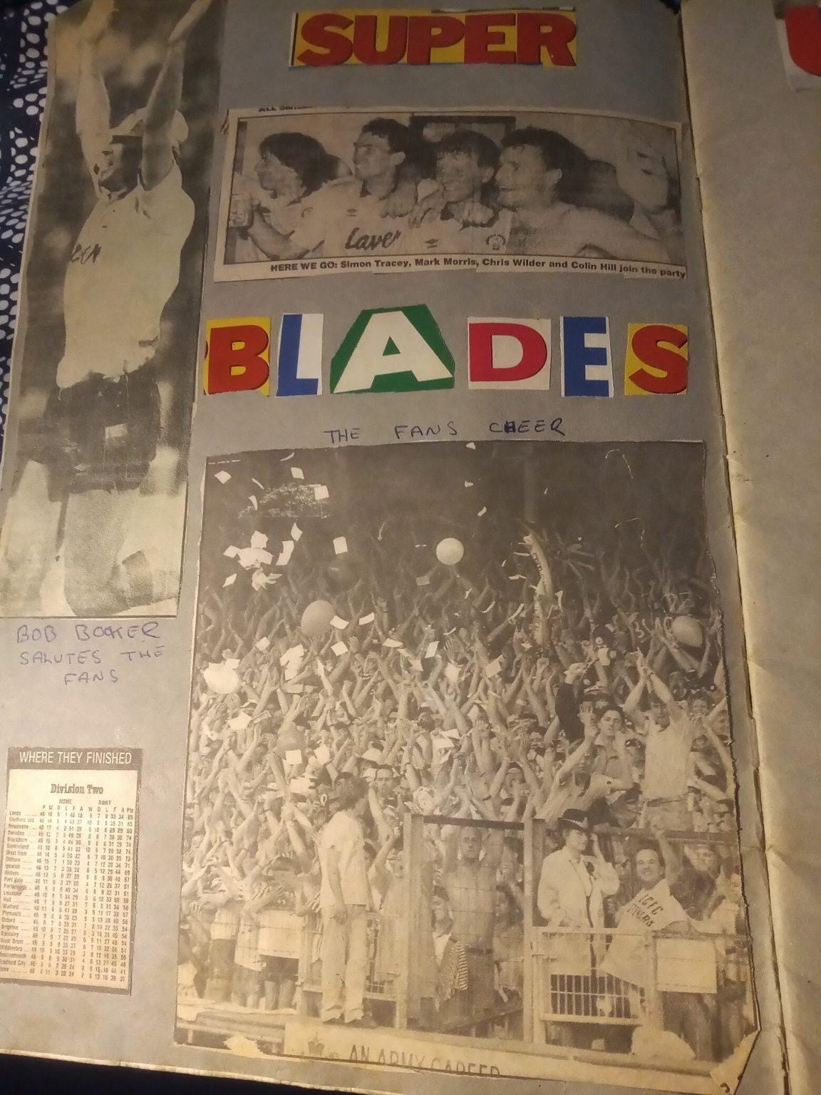 The first proper pages of the scrapbook chart United’s promotion to Division One in the 89/90 season, moments that came before I had succumbed to the Blades bug.