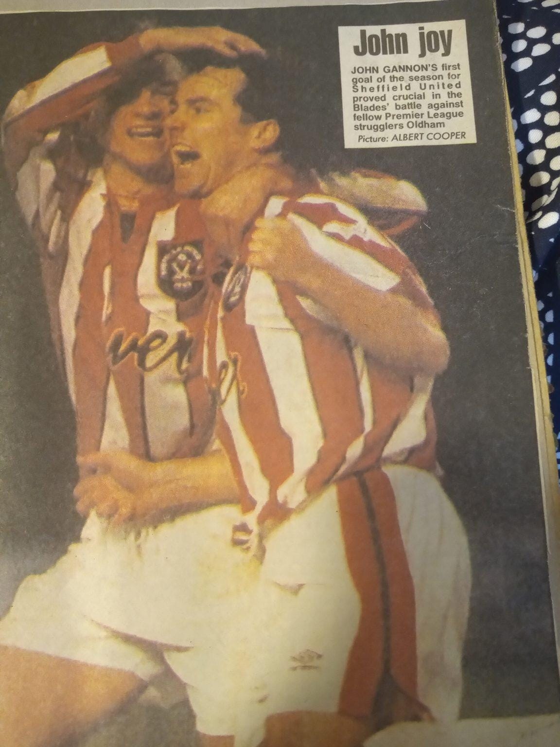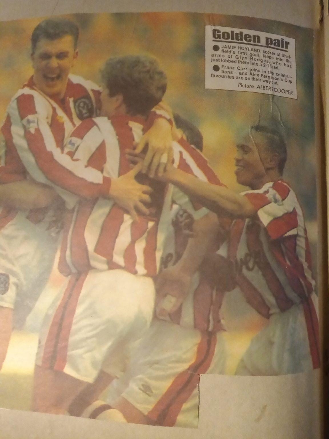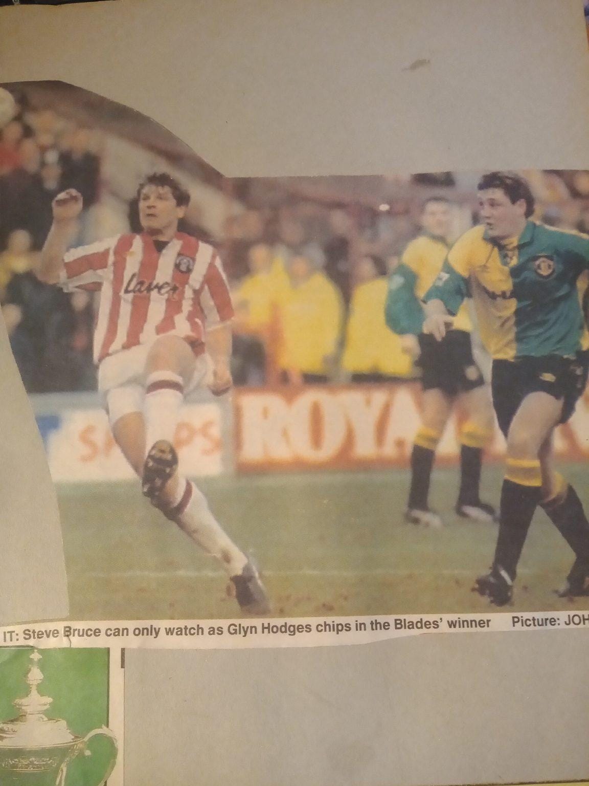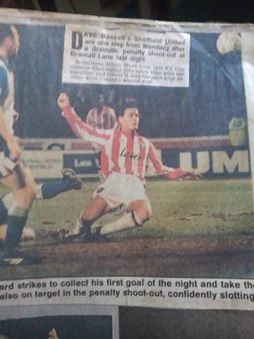 The Blades were struggling to compete with the richer teams in the newly found Premier League but were still a match for anyone on their day. This was no better illustrated than when we beat Manchester United in the fifth round of the FA Cup. This was one of those rare games in the early 90s where United played on a Sunday due to TV coverage and the Monday papers were all over our win.