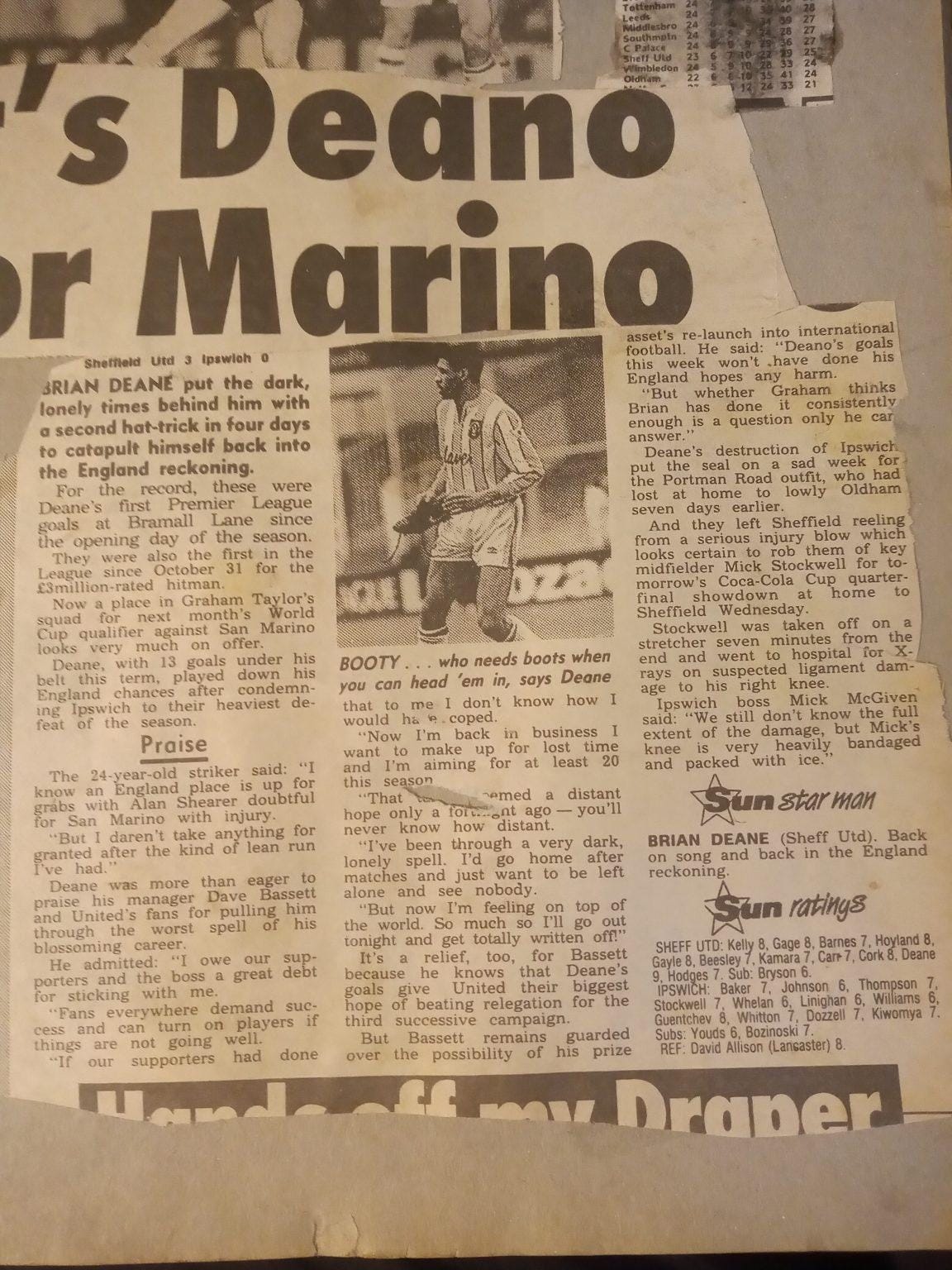 In fairness to The Sun, a few months later they were championing Brian Deane’s case for an England call up following two hat tricks in a week.