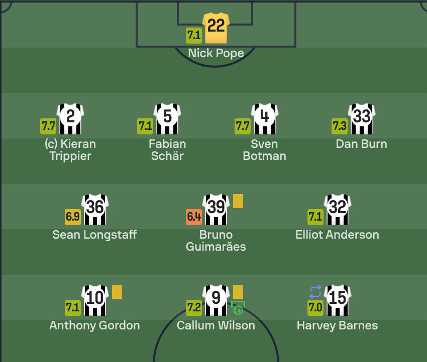 The keeper, the back four, Bruno Guimarães, Sean Longstaff and Anthony Gordon have all played twice in a week. That’s eight players who, if they start against the Blades on Sunday, will have played three times in eight days. So some rotation is pretty likely.