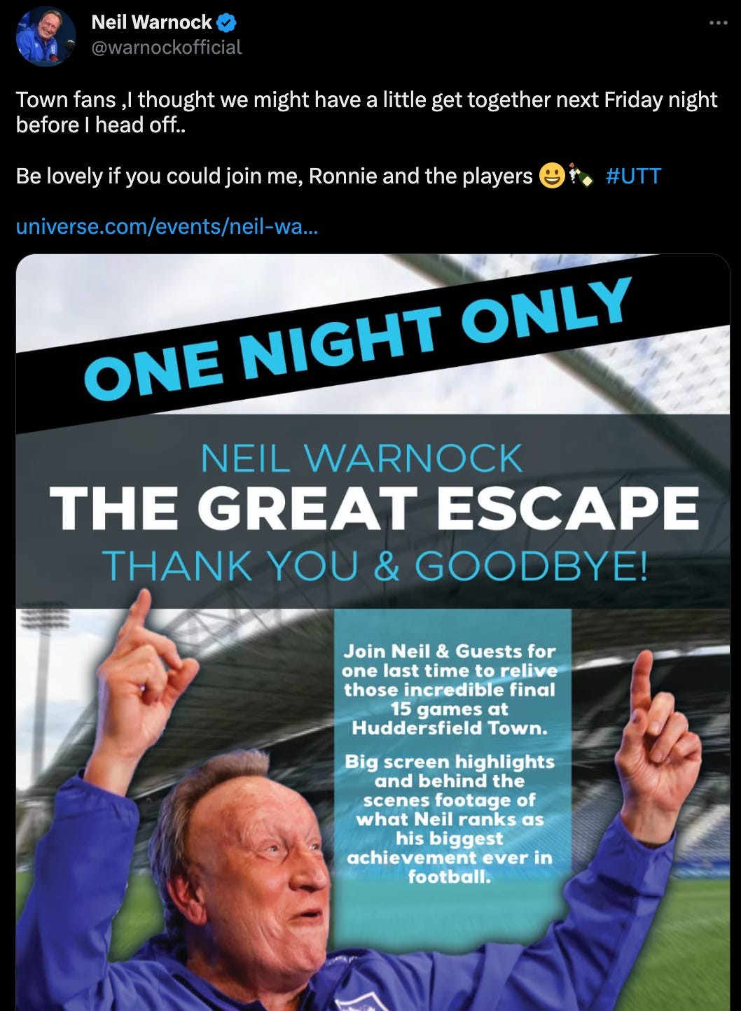With The Terriers needing a point to stay up, they faced a somewhat apathetic United team and ran out 1-0 winners. Huddersfield were safe, and their boss Neil Warnock, never one to miss out on a financial opportunity, was quick to toast himself: