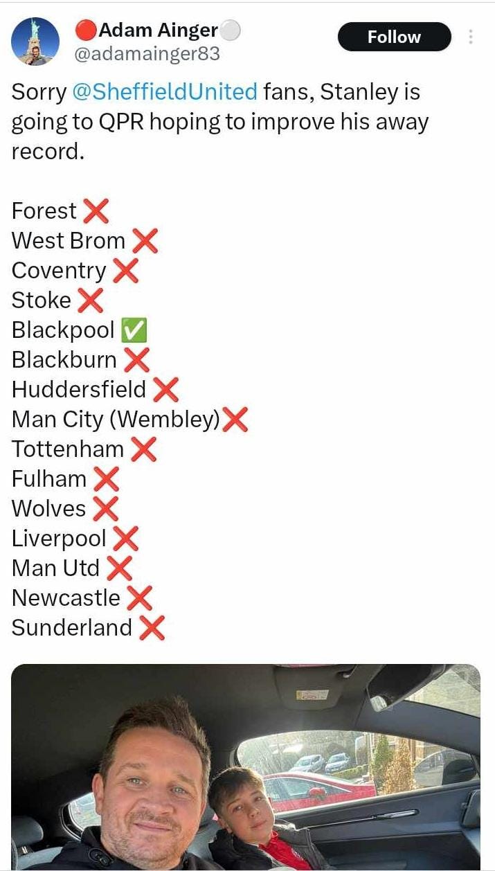 It was a blow for United, and a trip to Loftus Road to play QPR next up wasn’t going to be easy with The R’s only losing 1 of their last 8 home games. It also didn’t help that Stanley would be at the game.