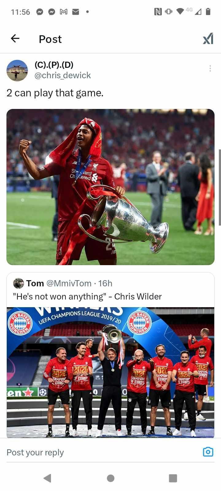 As the dust settled and the week continued, Wednesday fans continued to look more and more desperate as they searched for the “Champions League” of comebacks to Wilder’s comments.