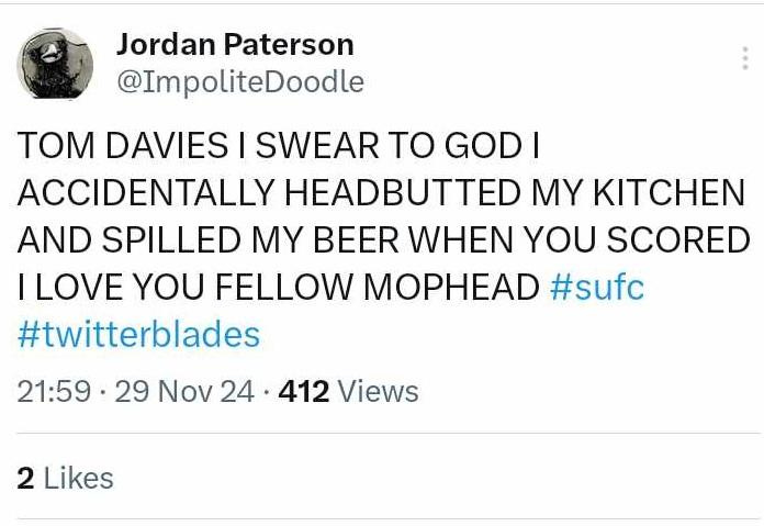 As always, it was a scrappy game. Blades keeper’ Cooper made a fantastic save to keep out Smith, Campbell was inches away from connecting with a Burrows cross but neither team managed to gain any real ground during the first half. After the interval, Wednesday started the brighter and had a few half chances but couldn’t break the deadlock and that left the door open for one Blades player to make himself a legend forever…