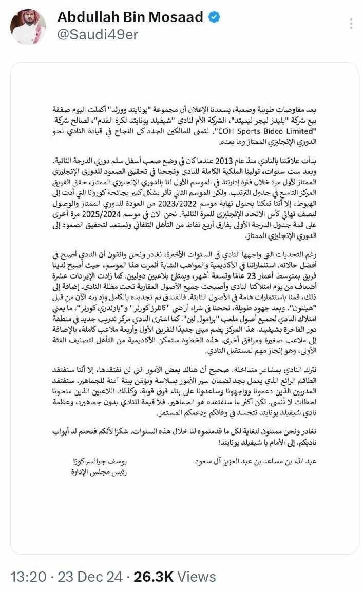 Former owner Prince Abdullah divided opinions at times, but nobody could argue with his parting words.