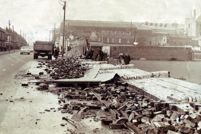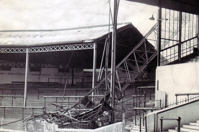 One of the new pylons was destroyed in the gales of 16 February 1962, when 97mph winds hit the ground. Part of the boundary wall on Shoreham Street was also blown over. This damage didn’t stop the FA Cup Round tie v Norwich going ahead the following day when a crowd of 49,304 watched United win 3-1 on their way to the semi-final with Leicester City.