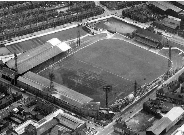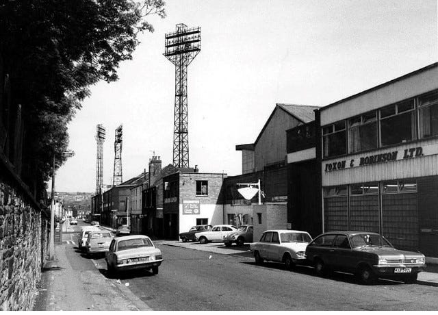 In the Summer of 1956, the floodlights were improved and used for the first time in Len Browning’s Benefit Game on 1 October 1956 when, despite the heavy rain, a crowd of over 17,000 turned up to see a combined United and Wednesday XI beat a Leeds United XI 7-1.