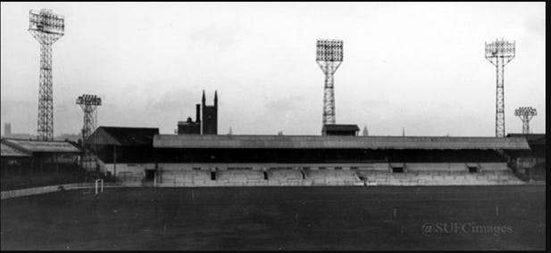 We all take the lights for granted nowadays, but next time you walk out of the darkness into the brilliantly illuminated Downtown Bramall Lane, remember that our ground staged the world’s first floodlit match, and that TV chose us to play in the first ever floodlit televised game.