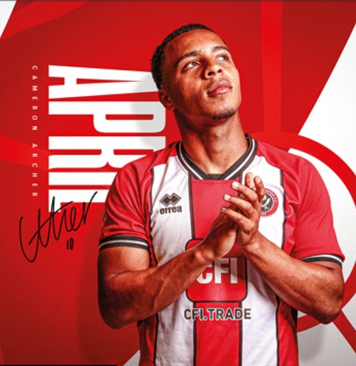 The top slot goes to Cameron Archer, who looks every inch the Premier League striker with this pose. Easy posture, raised chin, hands rubbed together in contemplation of scoring a 25-yarder off the underside of the bar in his side’s first win of the season. No need for gimmicks when you’re the marquee, goalscoring signing of the summer. A cut above, well played.